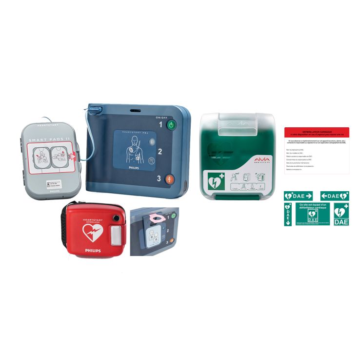Ce pack Sérénité avec défibrillateur FRx, armoire pour l'intérieur et accessoires indispensables est conforme à la réglementation et facilite votre installation.